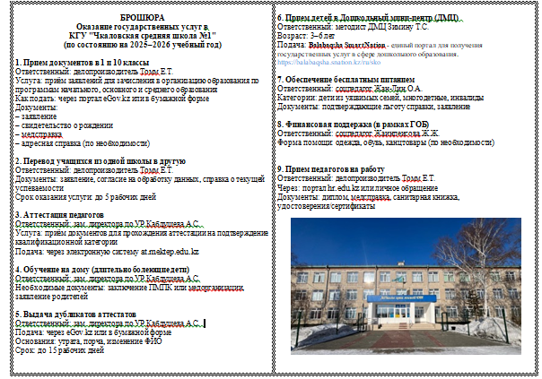 | 9 | 470-1 | 00803010-1 | Прием документов педагогов для участия в конкурсе на занятие вакантной или временно вакантной должности государственных организаций образования | «Об утверждении правил назначения на должности, освобождения от должностей первых руководителей и педагогов государственных организаций образования» Совместный приказ Министра просвещения Республики Казахстан от 31 марта 2025 года № 57 и Министра труда и социальной защиты населения Республики Казахстан от 31 марта 2025 года № 96. Зарегистрирован в Реестре государственной регистрации нормативных правовых актов № 35900 |