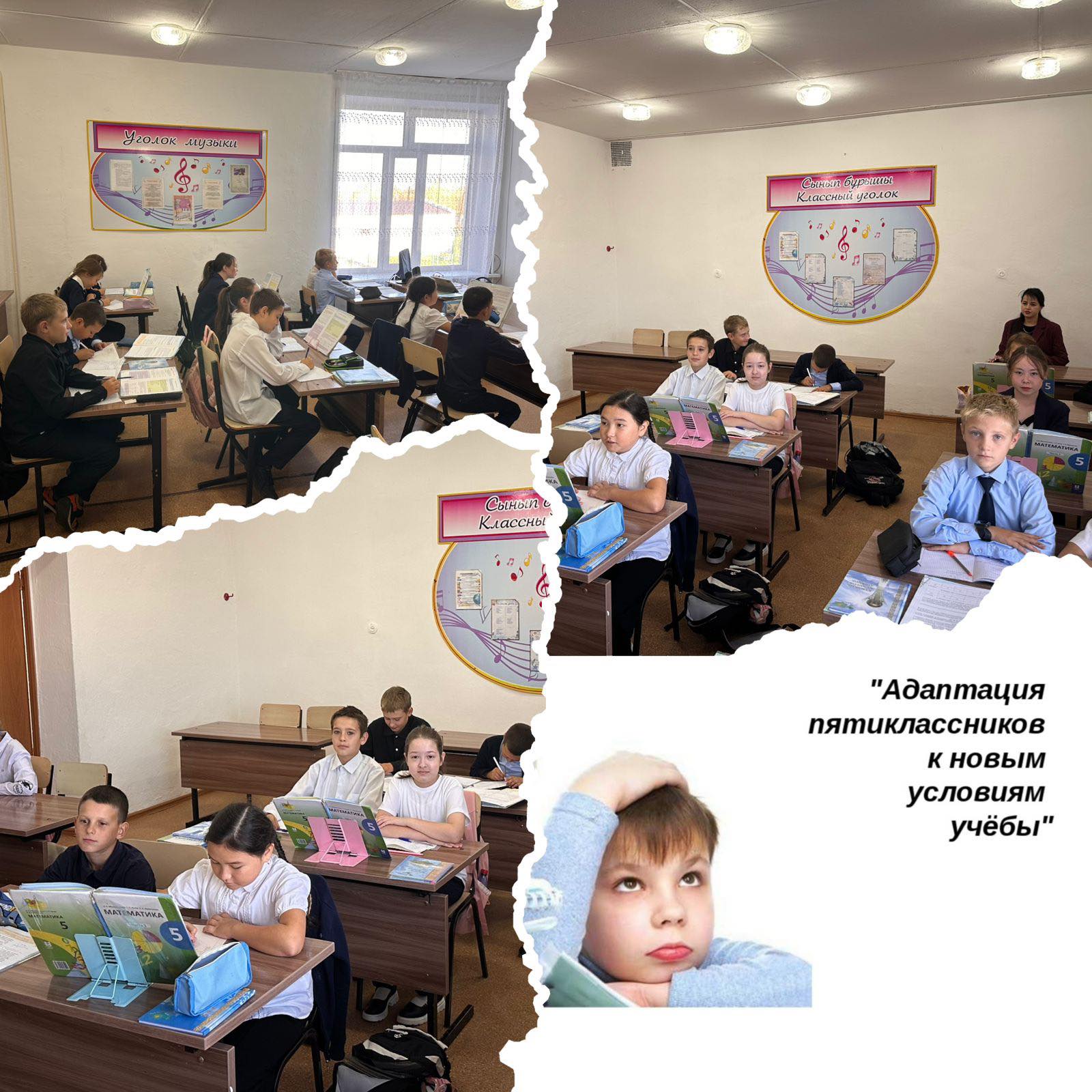 Педагог-психолог Искакова Д.Е. 5-сыныптардың сабақтарына қатысып, оқушылардың бейімделу кезеңінің табыстылық деңгейін анықтау, қолайлы жағдай жасау және заманауи сабаққа қойылатын талаптардың сақталуын қадағалау мақсатын көздеді.